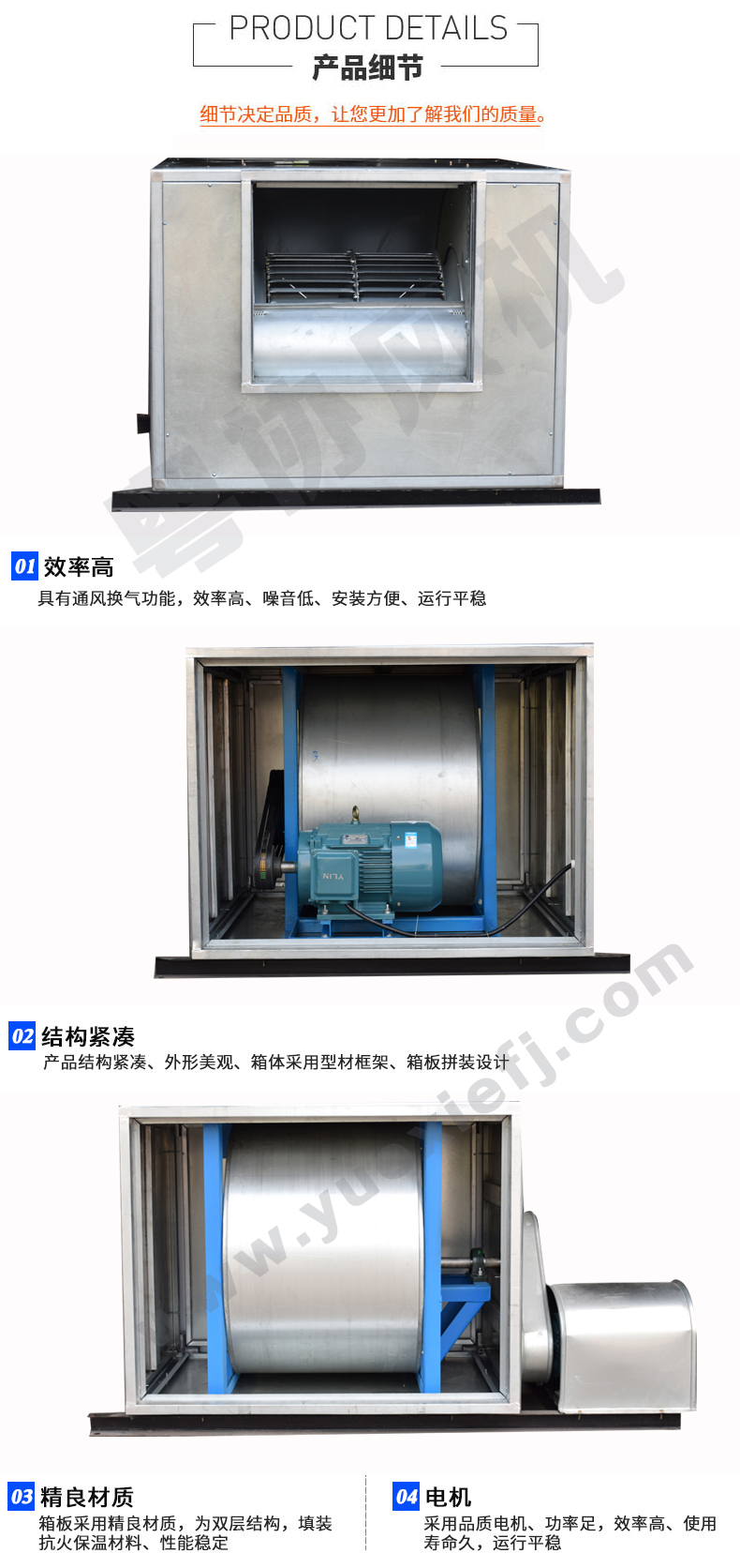 HTFC低噪聲消防排煙風(fēng)機(jī)兩用柜式離心風(fēng)機(jī),低噪聲雙吸前向多翼式或后向板翼式離心葉輪,皮帶傳動(dòng)形式,具有明顯的性能參數(shù)選擇范圍廣、噪聲低、耐高溫性能優(yōu)良、運(yùn)轉(zhuǎn)平穩(wěn)振動(dòng)小、安裝維護(hù)方便等優(yōu)點(diǎn),廣泛應(yīng)用于賓館、飯店、禮堂、影劇院、地下室、辦公樓、住宅小區(qū)、工廠車間等需要消防排煙、廚房排油煙及通風(fēng)換氣的場(chǎng)合,吊裝、坐地安裝均可,既可消防排煙又可平時(shí)通風(fēng),是目前高層建筑消防排煙、通風(fēng)換氣的理想產(chǎn)品。
